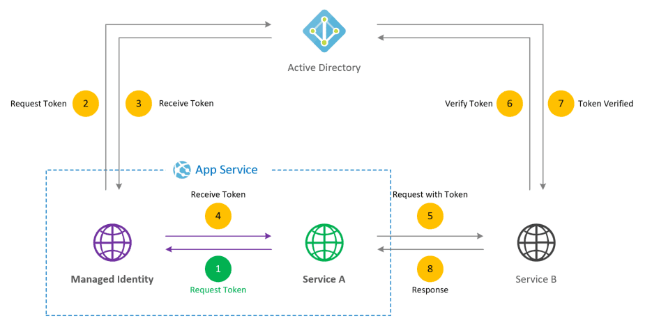 When an Azure resource (e.g., a VM or Azure Function) with a managed identity needs to access another Azure service (such as a Key Vault, Storage Account, or Azure SQL Database), it authenticates using Azure AD. This process does not require any manual management of credentials, as Azure manages the lifecycle of the identity and authentication behind the scenes.